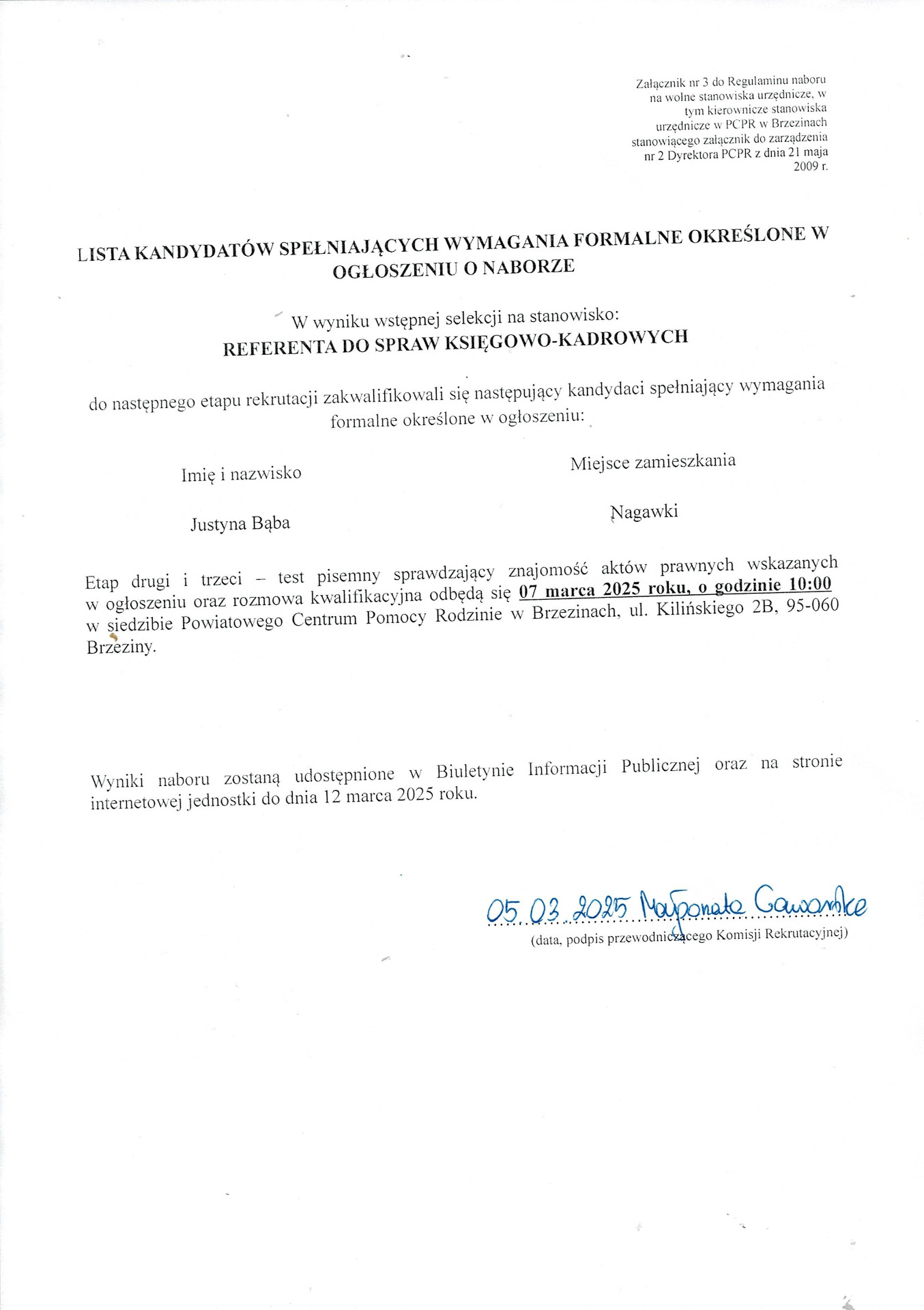 Nabór kandydatów na wolne stanowisko urzędnicze