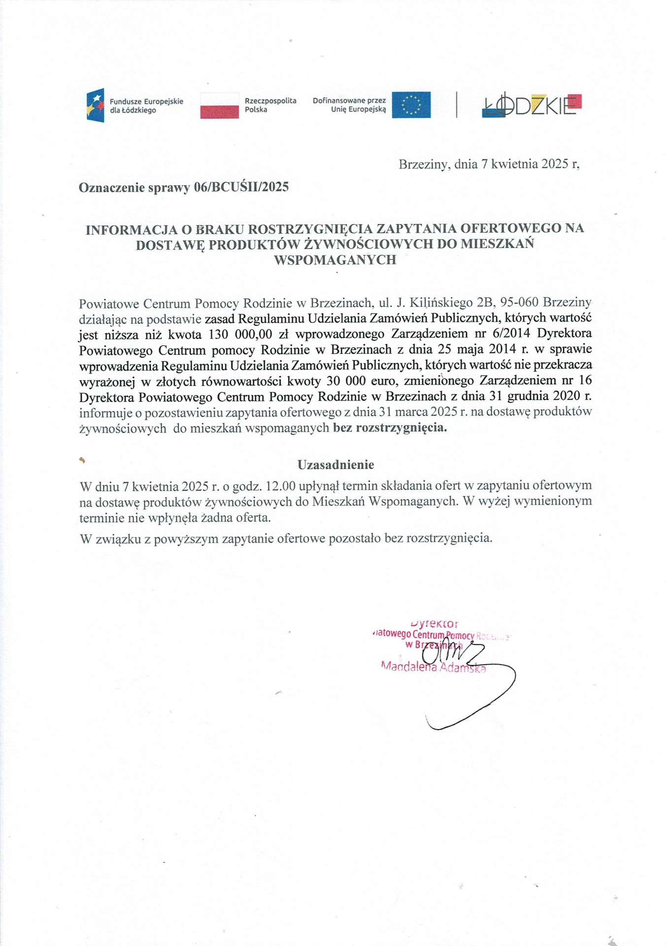 Brzeziny, dnia 31 marca 2025 r. Zapytanie...
