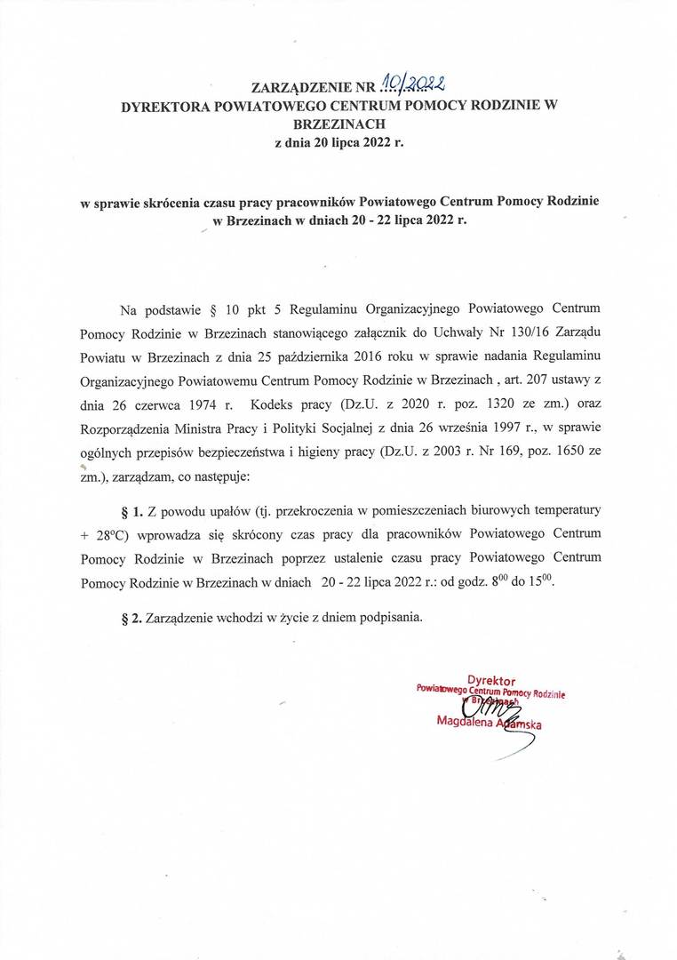 Zarządzenie Nr 10/2022