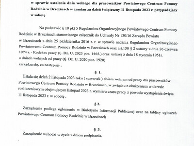W sprawie ustalenia dnia wolnego dla pracowników...